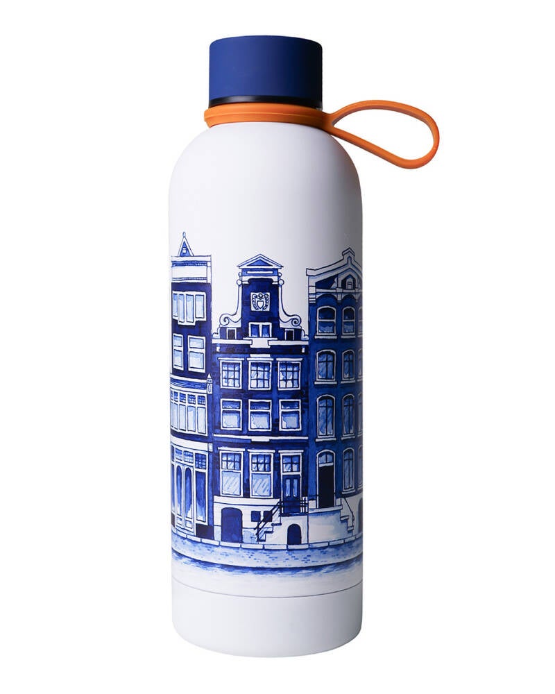 Heinen Delfts Blauw Thermosfles Grachtenpanden