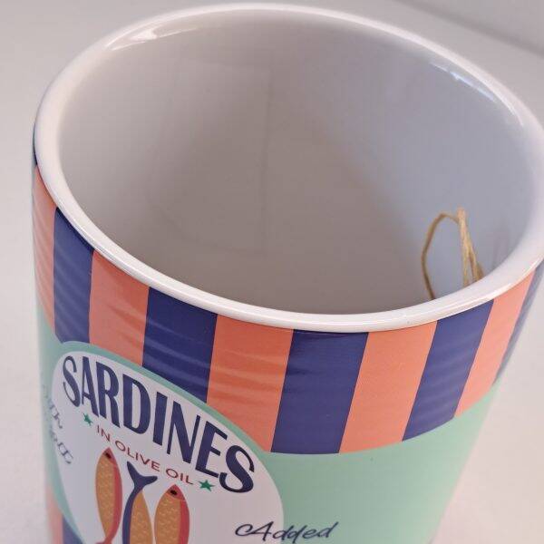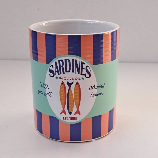 Een kleurrijke bloempot in de vorm van een sardineblik, perfect voor een speelse touch.