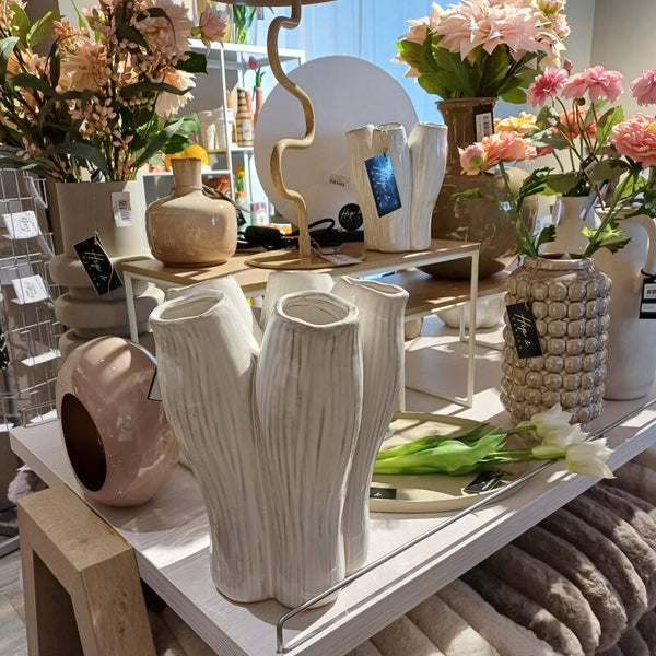 De zachte, natuurlijke tinten en eenvoudige vormgeving stralen rust en elegantie uit, waardoor deze tulpenvaas perfect past in elk interieur.
