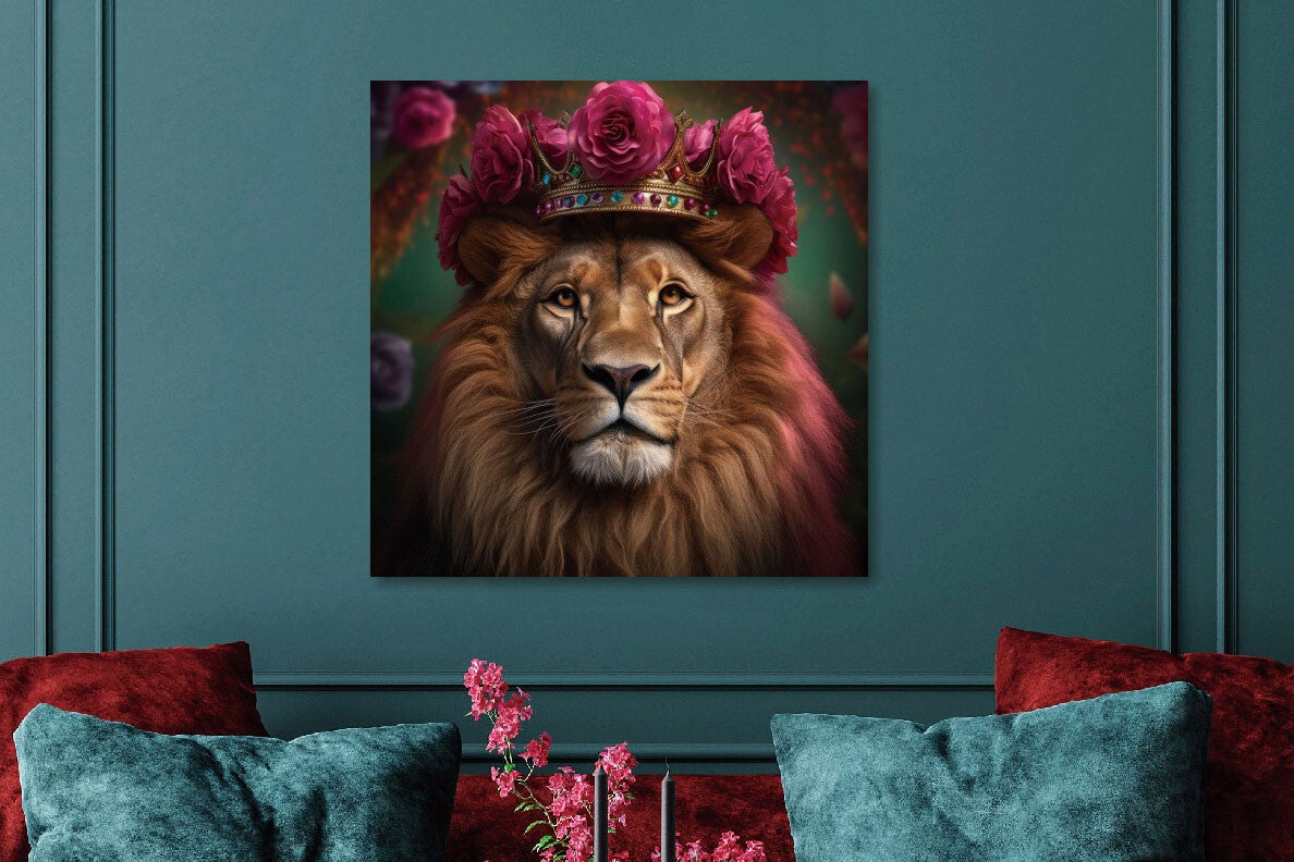 Glasschilderij Leeuw met Kroon