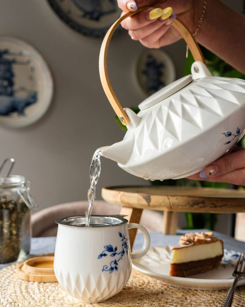 Een heerlijke, porseleinen mok met oortje uit de Blauw Vouw collectie van Heinen Delfts Blauw. De keramische tradities van Azië en Nederland zijn onlosmakelijk met elkaar verbonden. Ter ere hiervan ontwierp Romy Kühne het serviesgoed ‘Blauw Vouw’. Een verrassende ontmoeting tussen de Aziatische vouwkunst Origami en het Hollandse Delfts blauw. Het werk van Romy Kühne kenmerkt zich door geometrische vormen en oog voor het ambacht. “In een tijd waarin massaproductie en ‘snelle’ technieken zoals 3D-printen, de boventoon voeren in design, wil ik graag dat ook het ambacht behouden blijft. Vandaar dat ik ambachtelijke en moderne technieken en vormgeving combineer. Het serviesgoed ‘Blauw Vouw’ is daarvan een voorbeeld.” DIT SERVIES IS VAATWASSER-, MAGNETRON- EN OVENBESTENDIG.