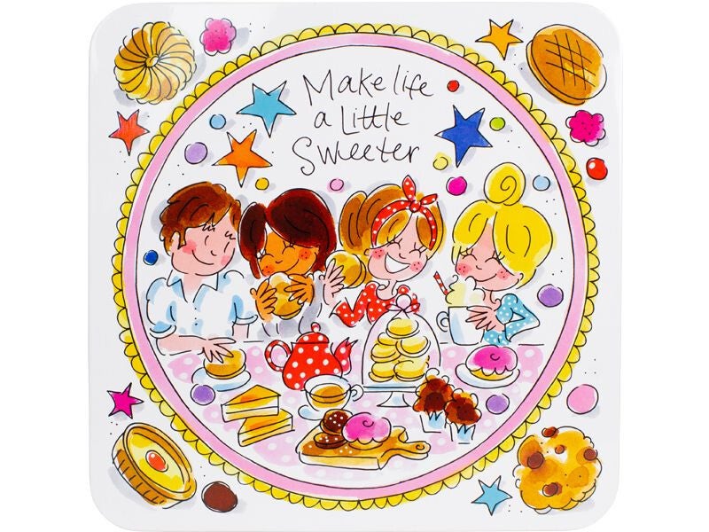 Dit nieuwe vrolijke blik 'Sweeter Life' maakt deel uit van de collectie Even Bijkletsen. Het blik heeft erg vrolijke kleurrijke illustraties en maakt hierdoor jouw tafel nog gezelliger en zoeter! Dit blik is in de stijl van de nieuwe Even Bijkletsen items maar is ook leuk om met andere items van Even Bijkletsen te combineren. Make your life a little sweeter!